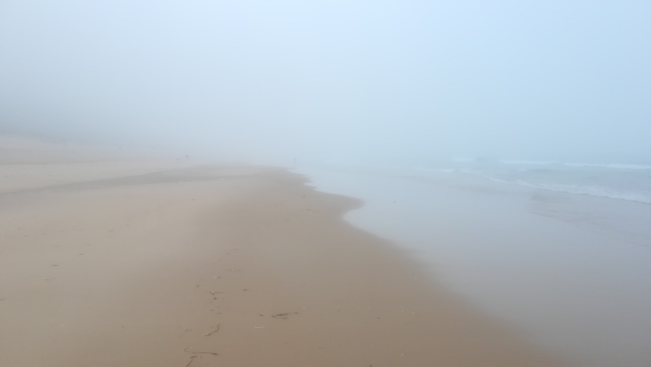 É uma alma saliente do nevoeiro que, se cruza comigo, sem nada dizermos. Sem, olharmos rostos, nos prender que vem, está e passa, para nos ficar de novo... a solidão. O canto revigorante da água que se me enlaça nos pés. Um pio estridente de gaivota, crocitar de corvo. É no coração a alegria do Inverno a chegar... Como gosto disto!