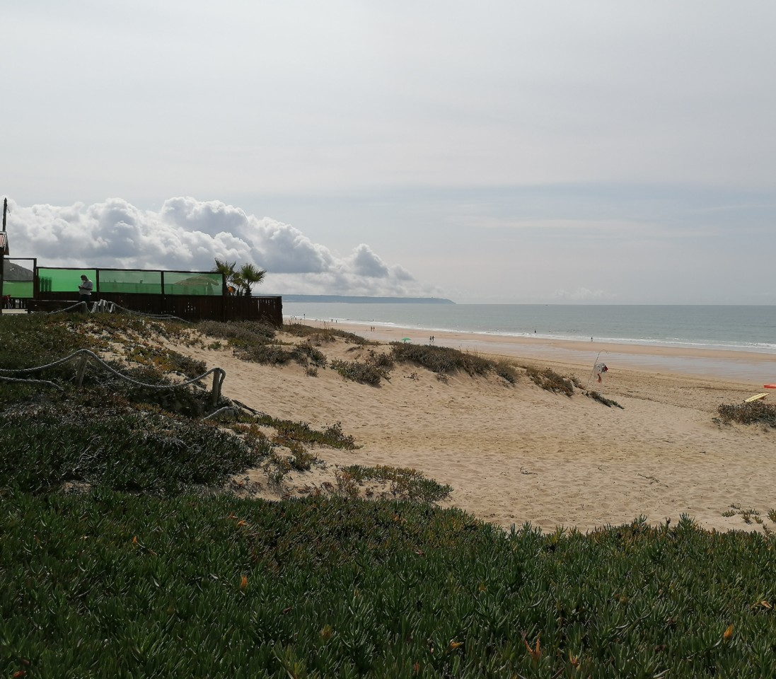 Ontem do lado de lá. Hoje, de cá... ao fundo o Cabo Espichel coroado de nuvens. A praia quase deserta e uma temperatura óptima.