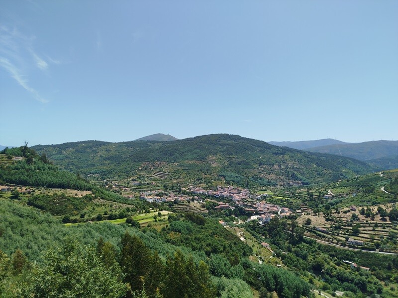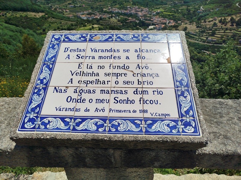 Decidiu-se merendar no Miradouro das Varandas de Avô cuja vista sobre o vale e a aldeia é linda.
